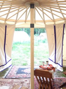 The Essential is the distilled essence of round pavilion. Though they have a lower price than the Stalwart, they are in no way an “economy” model. These include all the craftsmanship and engineering that my tents have become known for. The panels are wider (about 25″ vs about 17″) which means fewer spokes and fewer stakes. This adds up to less weight and easier set–up. Though not as tough as a Stalwart, the shape and quality materials and construction still allows them to weather storms that knock down lesser tents.